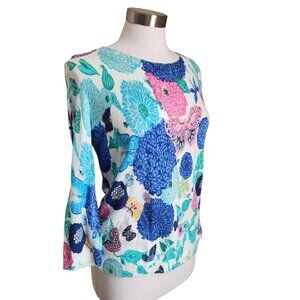 Talbots Womens Blouse Size Large Multicolor Floral Long Sleeve Pullover Top