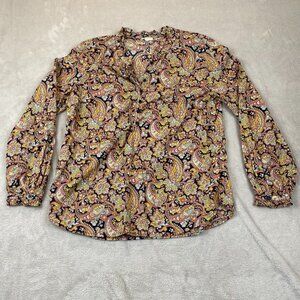 Talbots Womens Blouse Size Medium Paisley Print Long Sleeve 100% Cotton Boho
