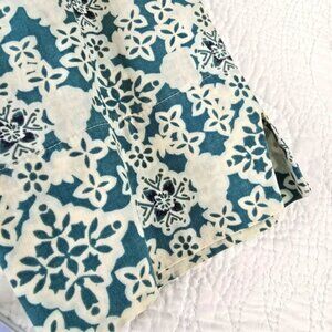 Blue green and off white tropical print