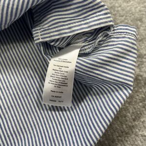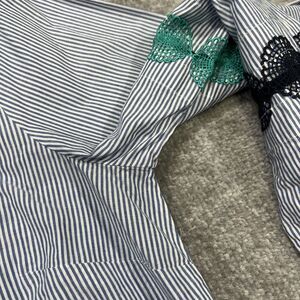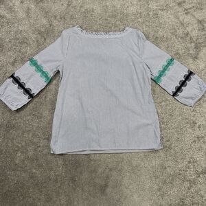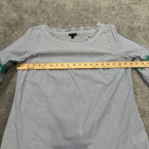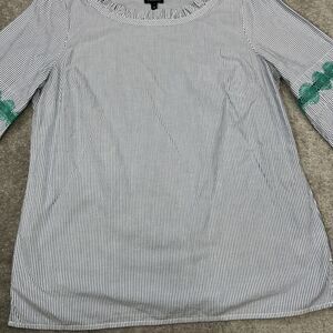 Talbots Women’s Blouse Top Size Medium Blue Striped Lace Boat Neck Ruffle