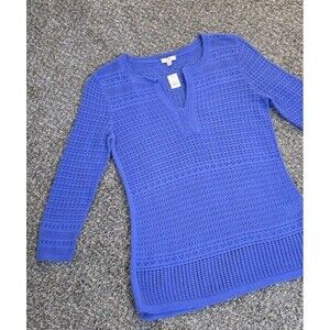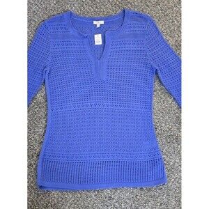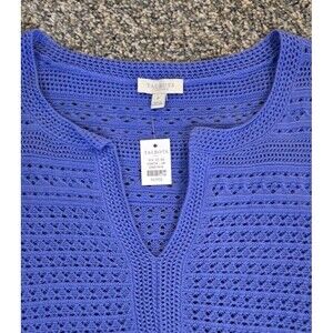 Talbots Women’s Blue 3/4 Length Sleeve Crochet Top/blouse. NWT Size Petite Small