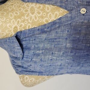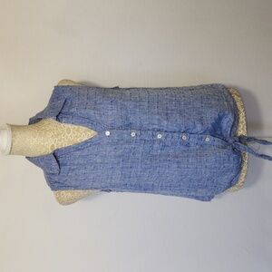 Talbots Women's Blue Chambray 100% Linen Button Down Tie Front Top Size SP