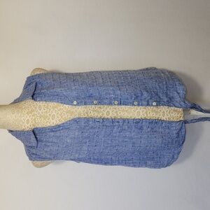 Talbots Women's Blue Chambray 100% Linen Sleeveless Collared Button Down Tie Front Top Size SP Spring Summer Beachy Boho Gently Used Excellent Pre-Owned Condition Reasonable Offers Welcome