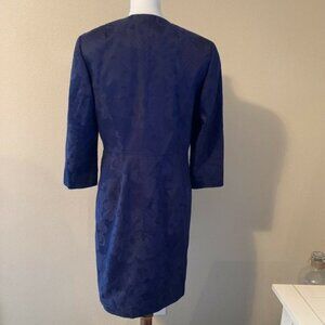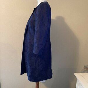 Talbots Womens Blue Floral Print Tapered V Neck Formal Evening Jacket Size 8