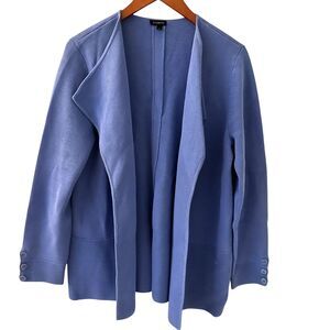 Talbots Womens Blue Knit Open Thick Rayon Ribbing Cardigan Sweater Size L