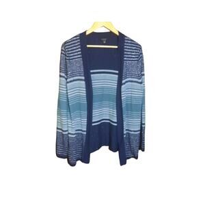 Talbots Womens Blue Metalic Stripe Long Sleeve Open Front Cardigan Size Large