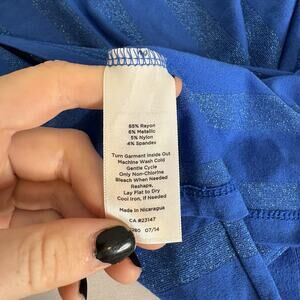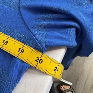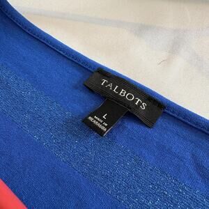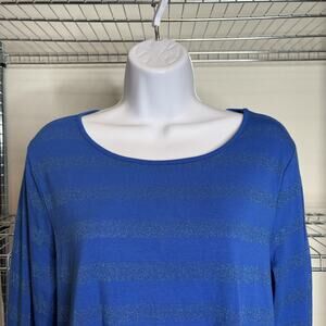 Talbots Womens Blue Metallic Striped Sweater Size L Coastal Preppy Classic