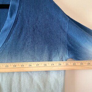 Talbots Womens Blue Ombre Dip Dye Rib Knit Boyfriend Cardigan Sweater Size PXL