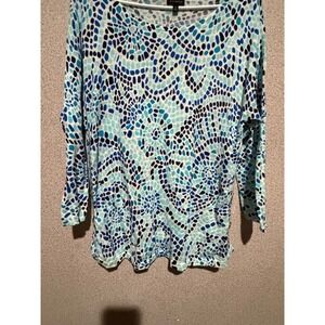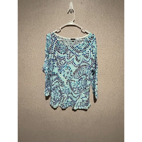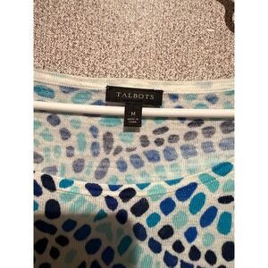 Keywords: Talbots, Knit Top, Blouse, Dolman Sleeve, 3/4 Sleeve, Abstract Pattern, Blue, Womens Top, Casual, Office Wear, Medium