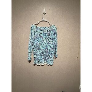 Talbots Women's Blue Pattern Knit Top Dolman 3/4 Sleeve Blouse Medium