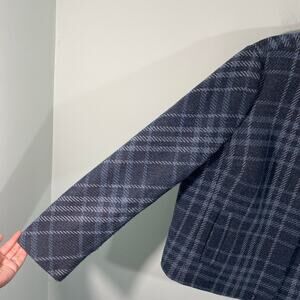 Talbots Women's Blue Plaid Wool Blend Button Up Coat Size 20
