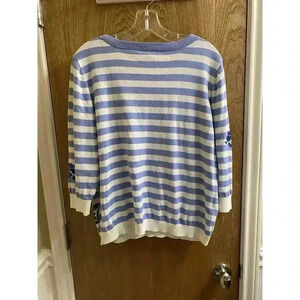 Talbots Womens Blue & White 3/4 Sleeve Striped Floral Knit Sweater Plus Size 1X