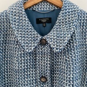 Talbots Womens Blue & White Tweed Blazer Jacket Size 18W Career Capsule Wardrobe