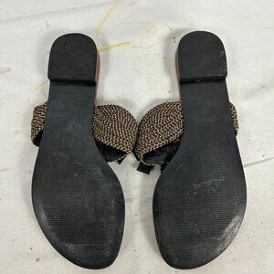 Talbots Womens Braided Strap Sandals Size 8.5B Brown & Black Leather Flip Flops