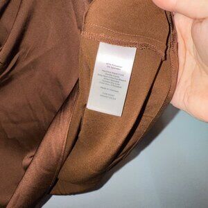 This sleeveless blouse from Talbots features a sophisticated cowl neck design, offering a polished and elegant look. Its rich brown color complements a variety of outfits, making it an ideal choice for professional settings. The polyester and spandex blend ensures comfort and a sleek fit.