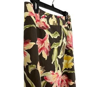 Talbots Womens Brown Floral Silk Cotton A-Line Skirt Side Zip Knee Length 12
