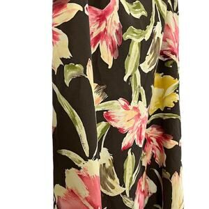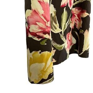 Add a touch of elegance to your wardrobe with this beautiful brown floral silk cotton A-line skirt from Talbots. This below knee-length / midi skirt features a high-rise waist and a side zip closure for a flattering fit. The skirt is lined and made of a dry clean only material, ensuring its longevity. Perfect for any occasion, whether it's a party, a casual outing, or a business meeting, this skirt is a versatile addition to your wardrobe. The skirt is a size 12, and the floral pattern adds a touch of femininity to the design. This skirt is perfect for summer, fall, and spring seasons. Made in China, this skirt is not handmade and is perfect for regular-sized women.