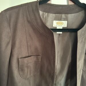 Sleek and classic open front Talbots brown suede blazer. Great condition.