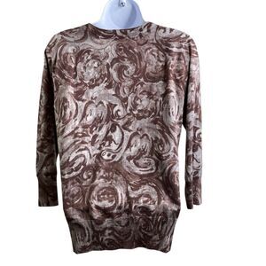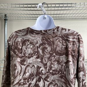 Talbots Women's Brown Swirl Abstract Wool Blend Cardigan Size M Knit Cottagecore