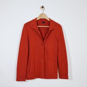 talbots burnt orange knit blazer jacket womens medium cotton blend rust orange cardigan jacket fall layering structured knit office casual chic timeless blazer