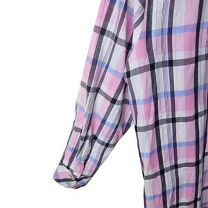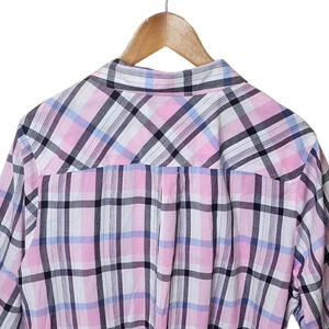 Talbots Womens Button Down Shirt Long Sleeve Pink Navy Plaid Top