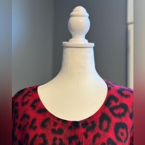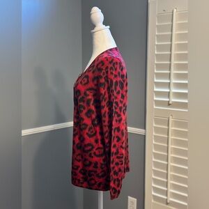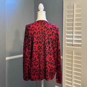 Talbots Women's Button Front 100% Merino Wool Cardigan Sweater Red & Black NWOT