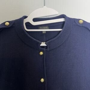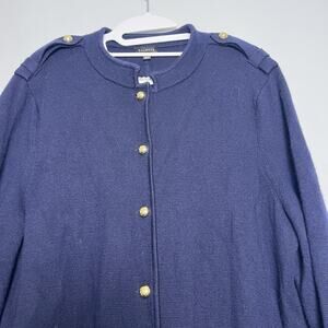 Talbots Womens Button Up Wool Blend Knit Blazer Sz XL Navy Blue Military Preppy