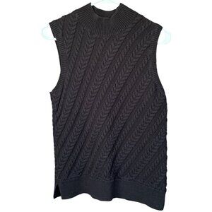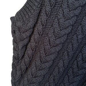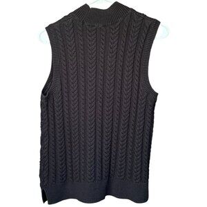 Talbots Womens Cable Knit Sleeveless Sweater Vest Size LP Black Fisherman Preppy