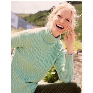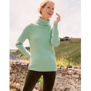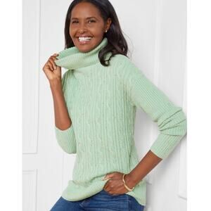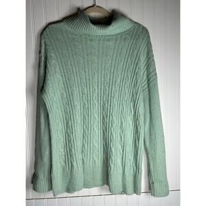 Talbots Women's Cable Knit Turtleneck Sweater in Frosty Green Sz L fall winter