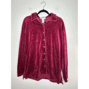 Talbots Women’s Cardigan Button Jacket Red Maroon Velour Vintage Size Large