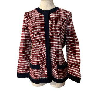 Talbots Women's Cardigan Jacket Sweater 1X Red Cream Navy Blue NWT NEW