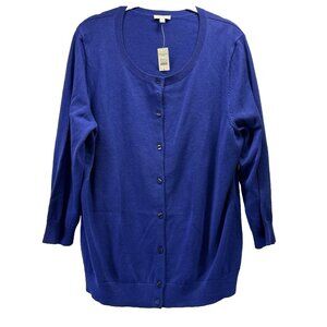 Talbots Women's Cardigan Size XL Royal Blue Button Up Long Sleeve 100% Cotton
