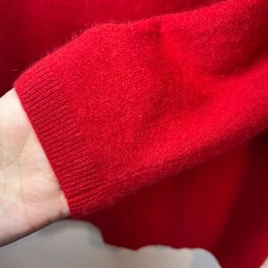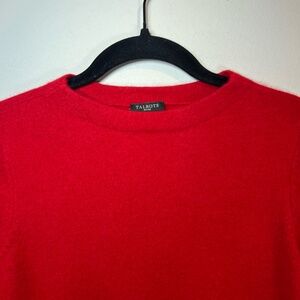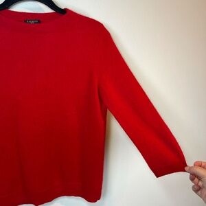 Talbots Cashmere Sweater Red Pullover Crew Neck 3/4 Sleeves Ribbed Neck Cuffs and Hem Straight Hem Stretch Super Soft Tight Knit Cozy Winter Colorful Holidays
