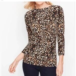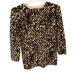 Talbots Womens Cashmere Sweater Size XS Leopard Animal Print Classic Preppy Work