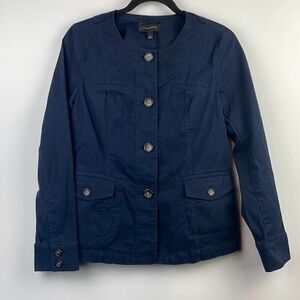 Talbots Women's Casual Cotton Blend Button Front Utility Jacket Blue Size 2
