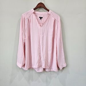 Talbots Women's Chiffon Popover Top Petite 2XP Pink Long Sleeves Neutral Office