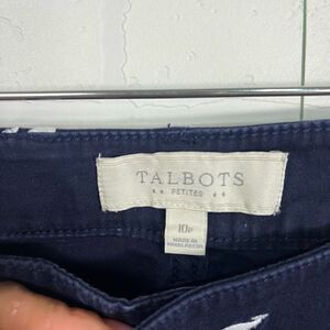 Talbots Womens Chino Pants size 10 petite Navy Blue Whale print Nautical Style