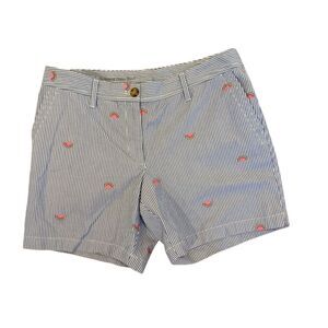 Talbots Women's Chino Shorts Blue/White Striped Watermelon Embroidery 6P