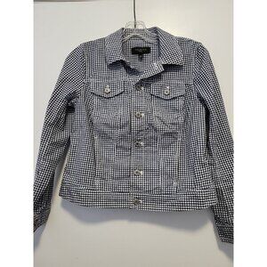 Talbots Women's Classic Jean Jacket Gingham Blue White Check Size PS