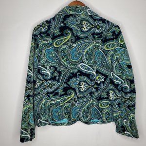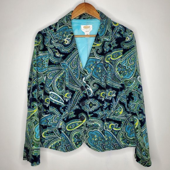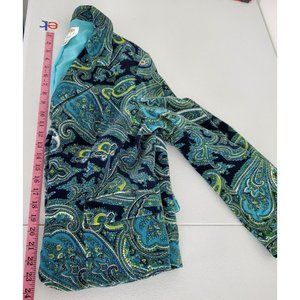 Talbots Womens Colorful Paisley Blazer Size 14 Petite Triple Button Teal Career