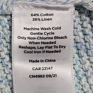 This Talbots sweater features a sophisticated blend of cotton and linen for a comfortable fit. The subtle blue hue with pink trim adds a touch of elegance, making it suitable for various settings.