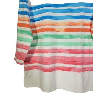 Talbots Women's Cotton/Spandex Water Color Striped 3/4 Sleeve top Size 1X