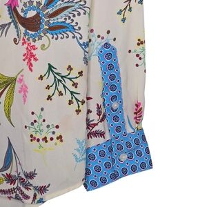 Talbots Womens Dancing Floral Band Collar Contrast Popover Blouse Size Small