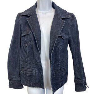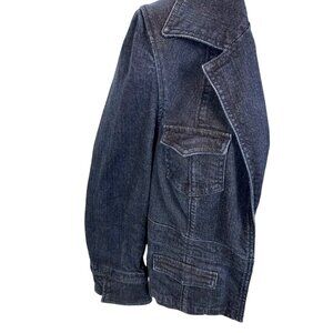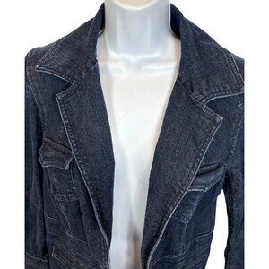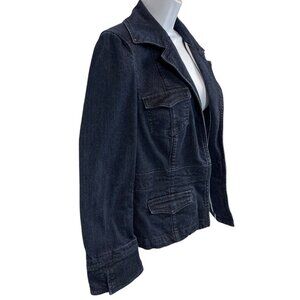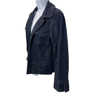 Talbots Women's Dark Blue Denim Buttons Blazer Jacket Stretch Size 12