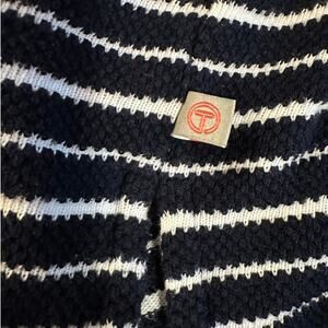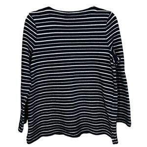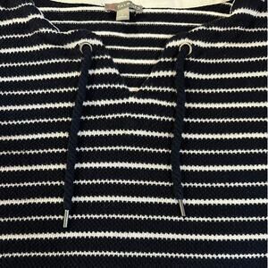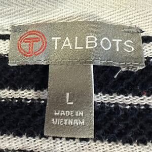 Talbots Women's Dark Blue & White Striped Sweater with Tie Neck Size Large