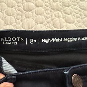 Chic new without tag Talbots Crops Jeggings. Never has been used. Size 8P. Dark Denim. High Waist. Crop Length. Fly front with button closure. Five pocket Sleek fit. Ideal for versatile styling.
