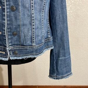 Talbots blue denim jacket with a beautiful Love and floral design in the back and two small front pockets. In great condition no stains. See pictures for more detail. Stylish and versatile blue denim jacket perfect for any casual outing. Features a classic design with button closures and a comfortable fit. 98% cotton 2% spandex measurements pit to pit 21” Size 12