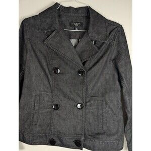 Talbots Womens Denim Jean Jacket Classic Double Breasted Short Size 14P Black