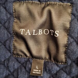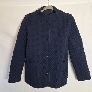 Talbots Womens Diamond Quilted Navy Long Sleeve Button Up Jacket Pockets Large