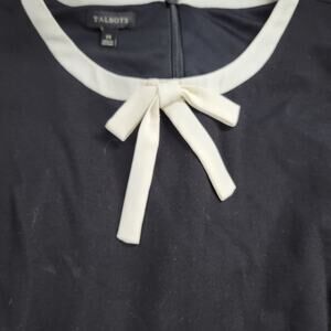 Talbots Womens Sheath Dress 14 Black Bow Detail Sleeveless Ponte Stretch Preppy